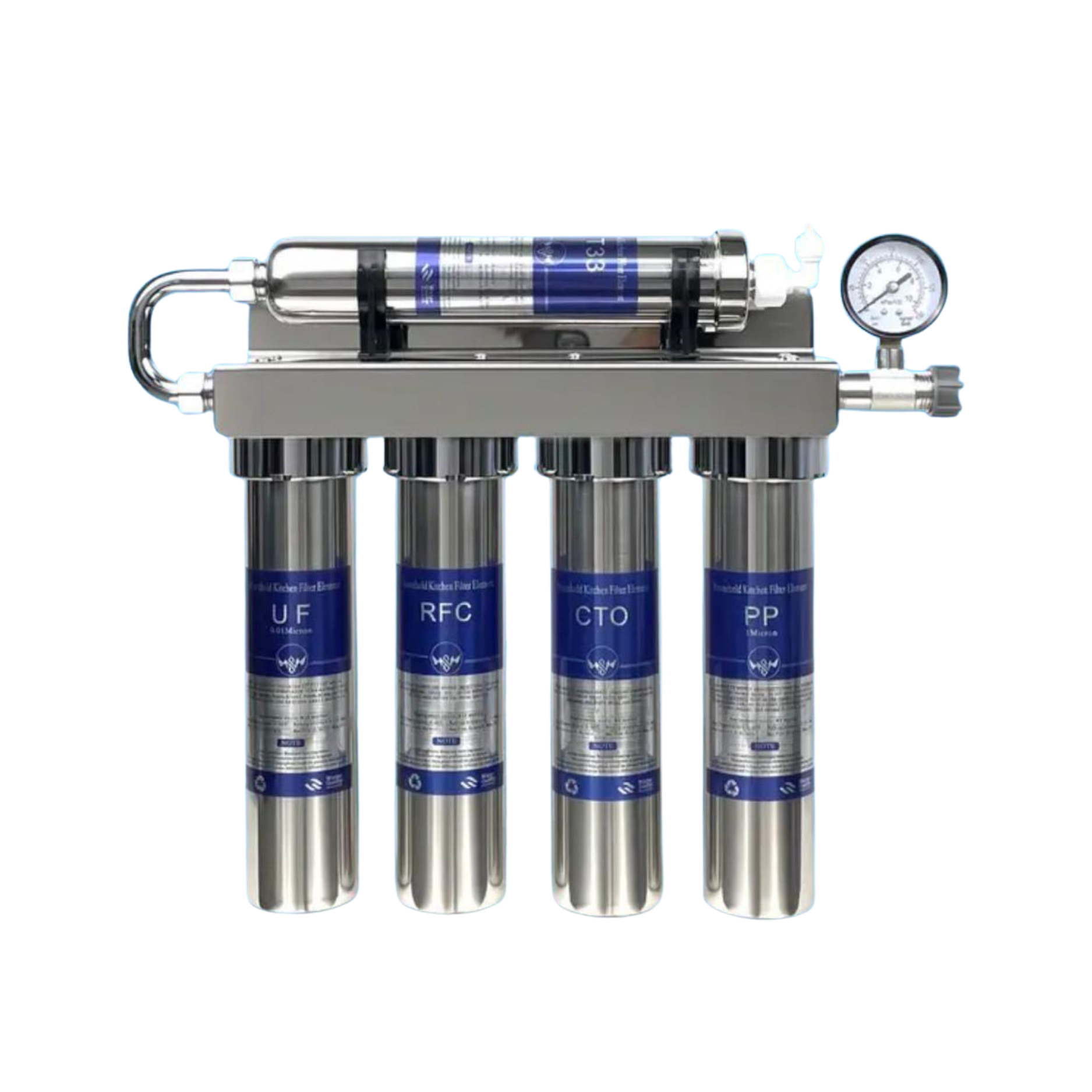 هذا الجهاز عبارة عن فلتر مركزي تحت الحوض مصنوع من الستانلس ستيل المقاوم للصدأ، ويعمل بـ 5 مراحل تنقية متقدمة لجعل مياه الشرب صحية ونقية تمامًا بدون تغيير طعمها الطبيعي.